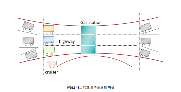WDM 시스템을 고속도로에 비유하여, 각 역할을 나타낸다.